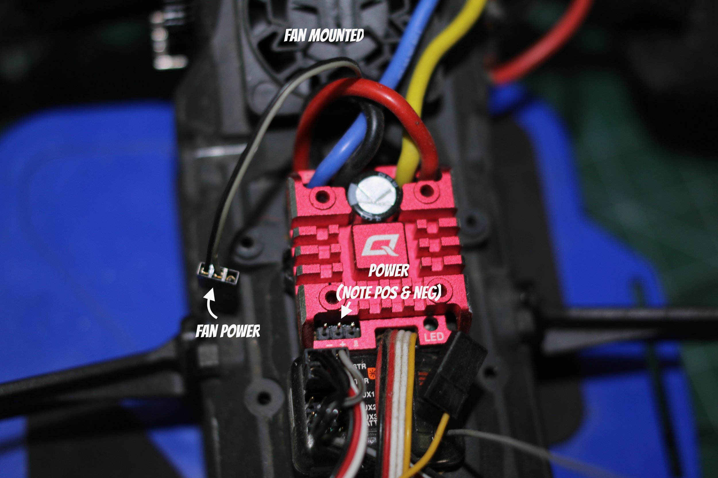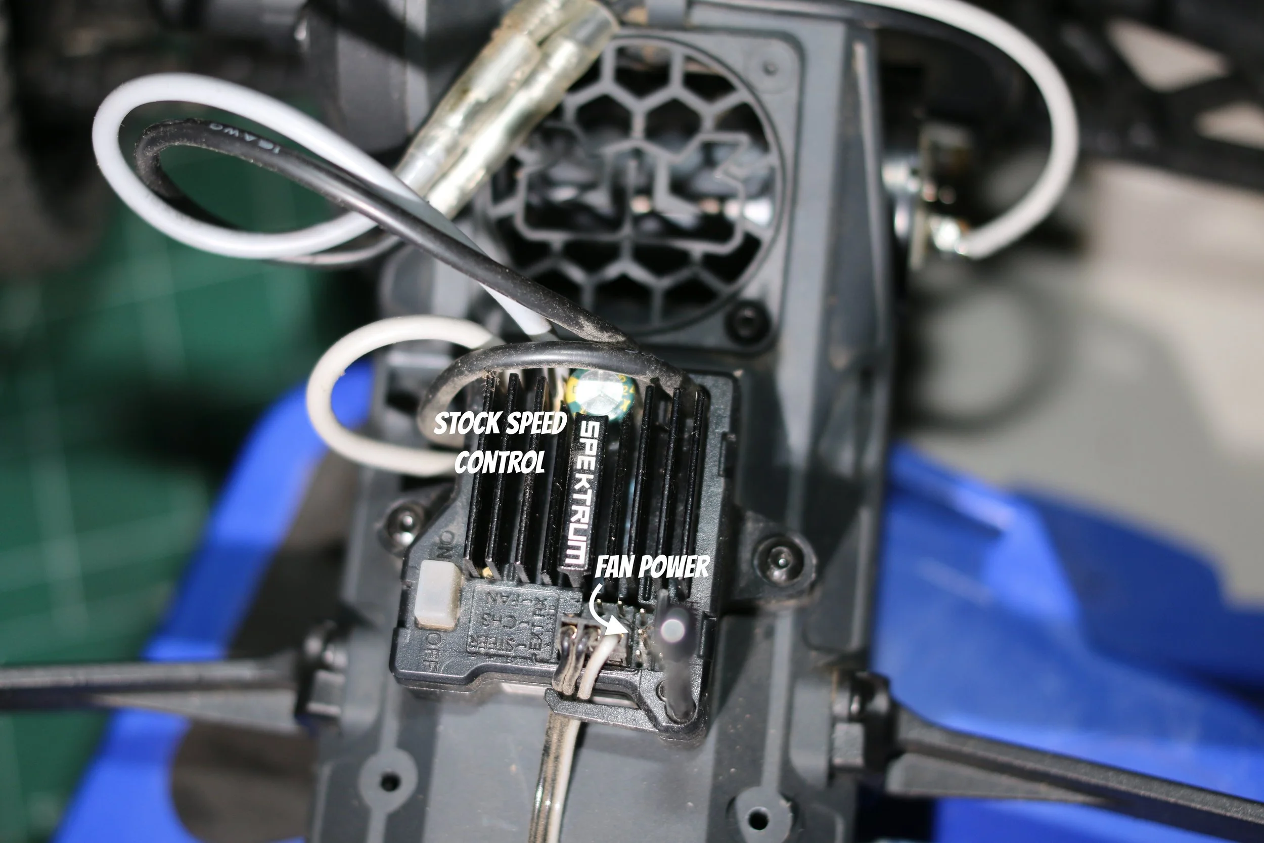 There is a spot that says “Fan” on the speed control, but that will only work with a 2-wire plug. I did some digging, and to do the Arrma fan, you have to attach it behind the LiPO/NiMH jumper.