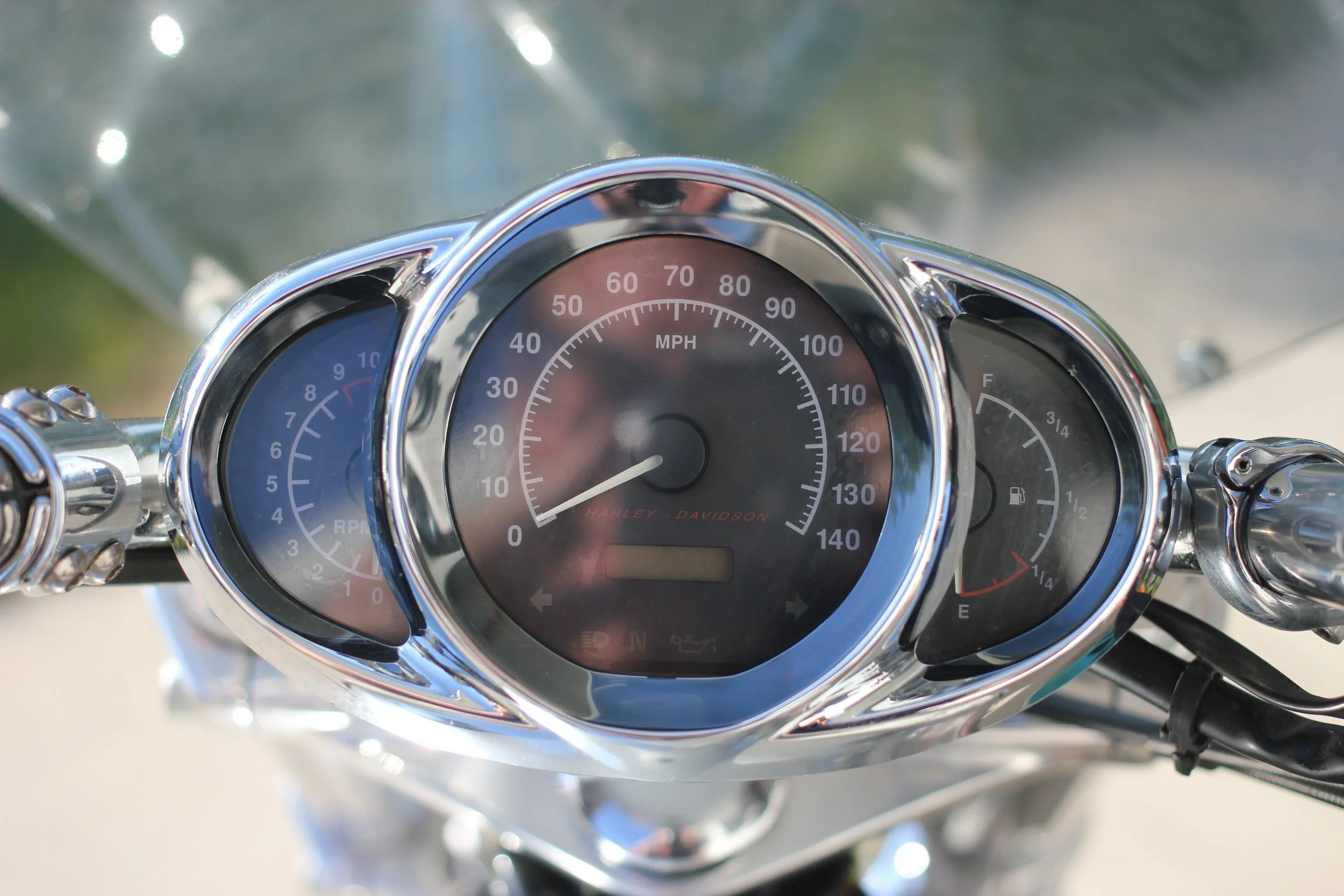I also like the gauge cluster. It is simple. Very simple! It has an actual gas gauge rather than a fuel light. I like the old school needles. It is classy, and it is also functional. So, I give Harley props for that.