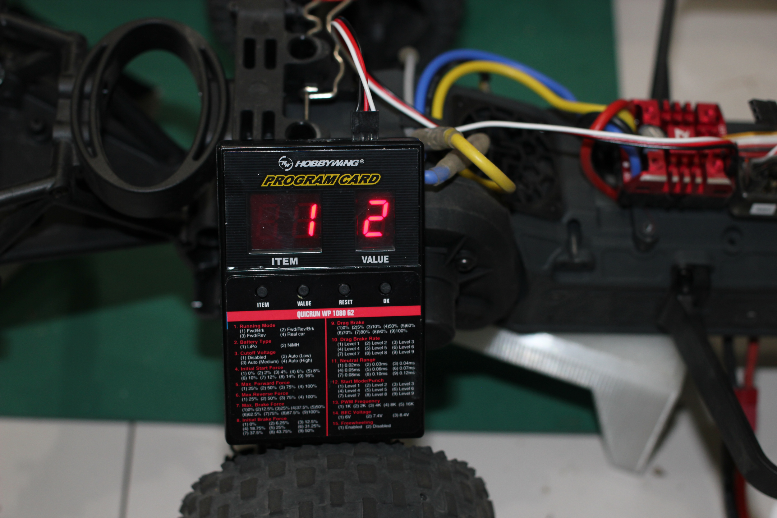 I programmed the speed control using the Hobby Wing Card (Amazon Affiliate Link). This is like getting the secret decoder ring, but better than tuning into little orphan Annie, and deconding a message that is a crummy commercial. The Hobby Wing Speed controller is way cooler! You can program how the speed control works. You will receive a “decoder card” in the 1080 speed control, which decodes the numbers that the programmer card displays. You follow the prompts on the card, and you will easily program the speed control. The best part is that this take minutes, and the program is instant. If you plug the card in and nothing happens, there is a good chance you plugged the programming wire into the wrong port. Just turn off the speed control, plug the wire into the other port, and turn the speed control back on. You should see numbers if it is talking to the speed control. Don’t worry…. my goldfish memory interferes with my competence. Thankfully, my goldfish memory never wins! (How to program is in the video at the bottom of this link. Just click on the chapter if you want to skip to it.