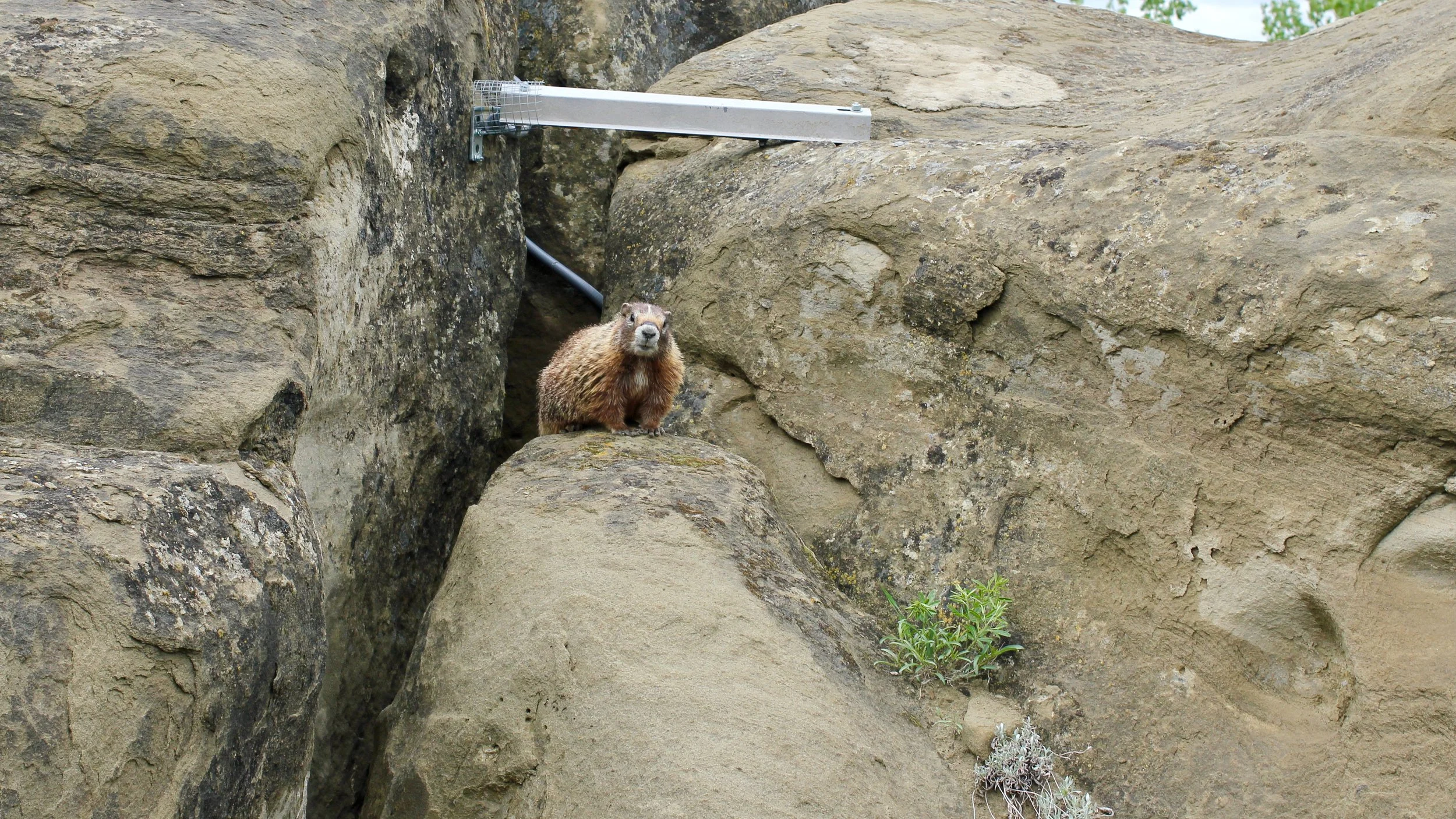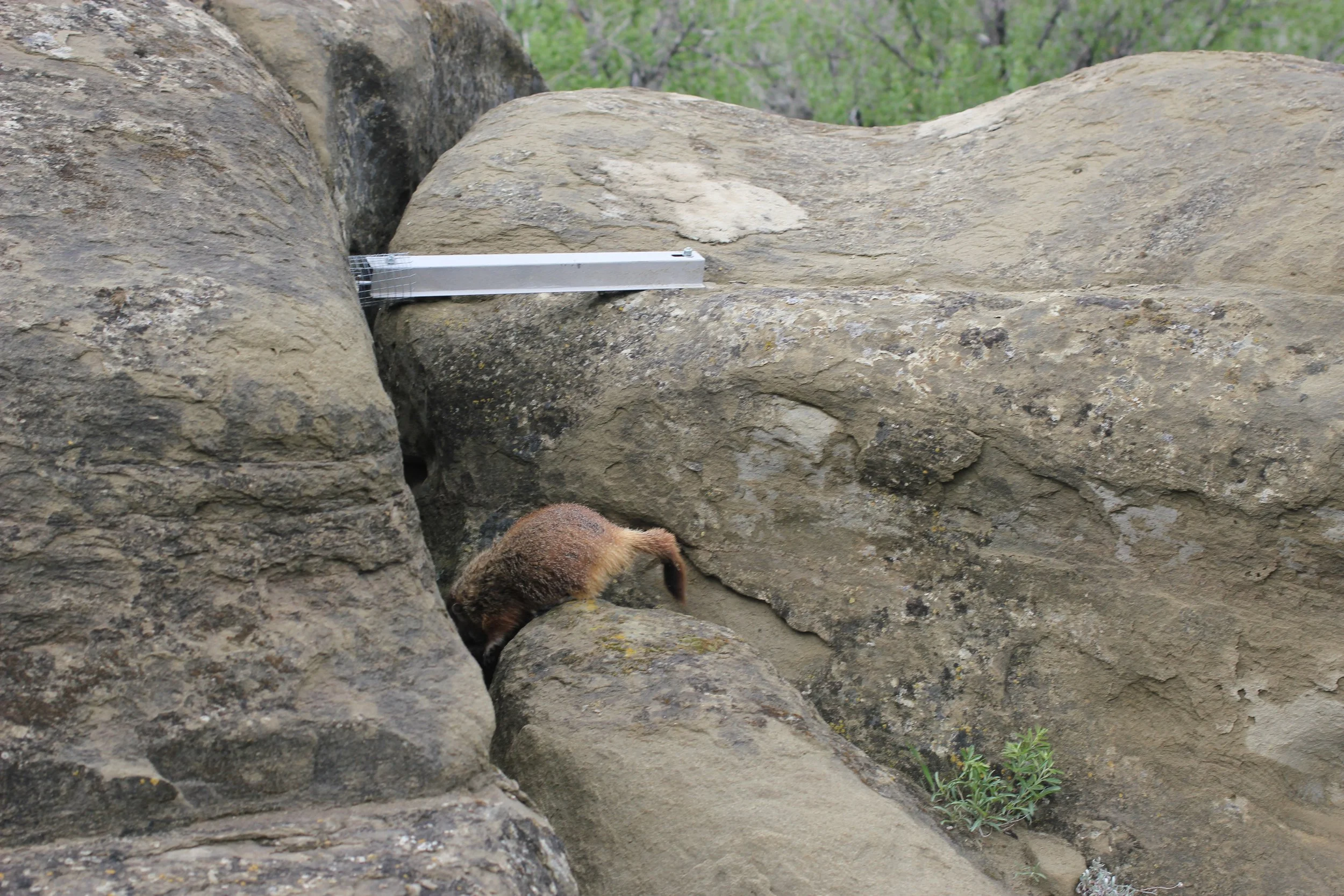 You will be greeted by friendly marmots. He seems pretty tame coming up for food, but clearly I am a bully, as all I could initially get a shot of was his hind end.
