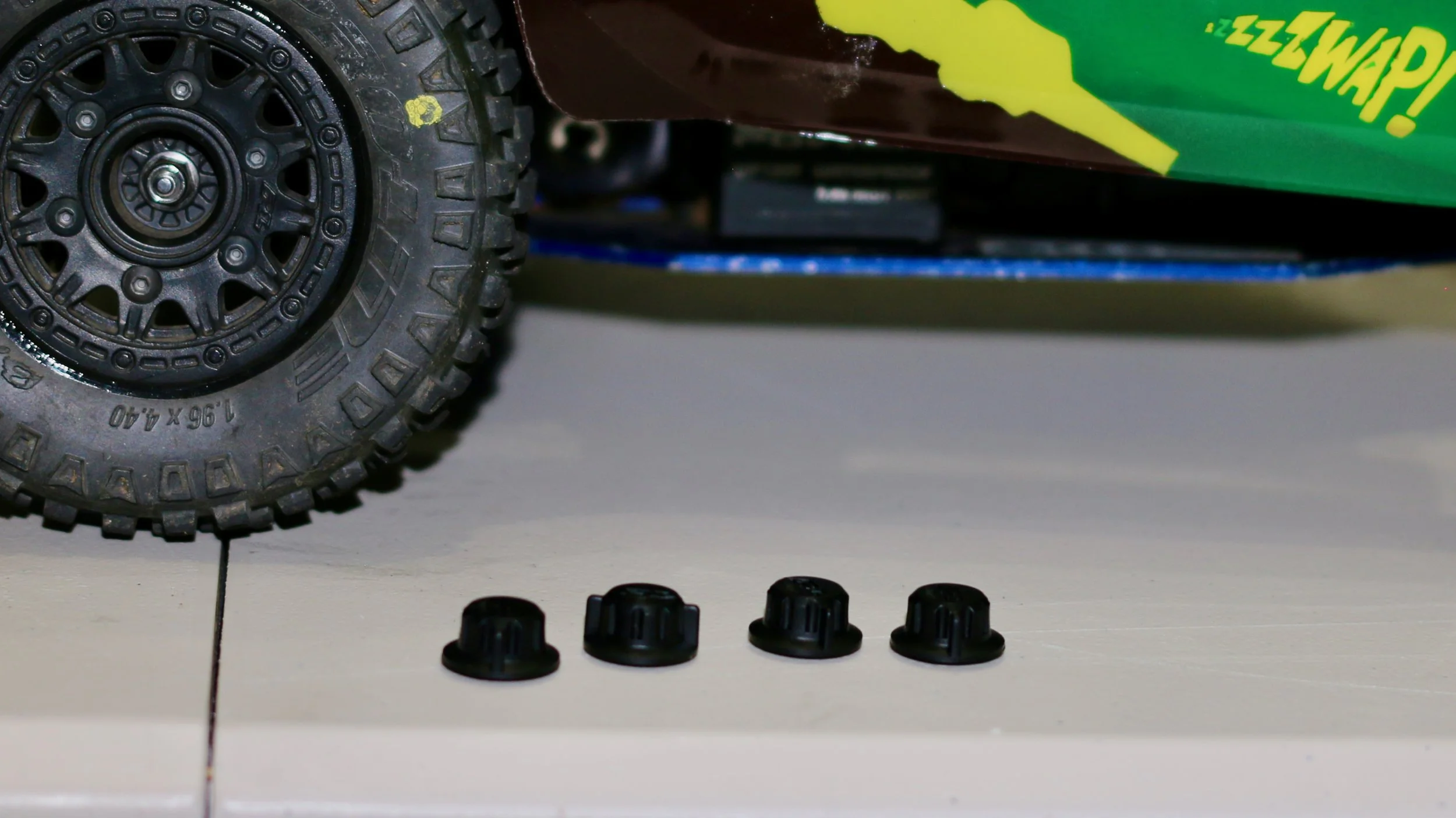 In terms of nitro tuning…. well, these make taking the body off and on very easy! I love that! I know that people like dumping on Traxxas, and I guess I am dong that in this post a bit. I will say that as I live in a place where it can be 40 in the morning and 90 in the afternoon on a summer day that it is nice to be able to quickly remove the body to tune the truck at different times of the day. One place where I waste a lot of time is looking for the body clips. I remove a body, do the hour or two turn, and then forget where I put the body clips. These caps are not easily lost. So, you can quickly remove, put caps down, do a couple of adjustments, and you are back to bashing. I think that is my favorite thing about this kit.