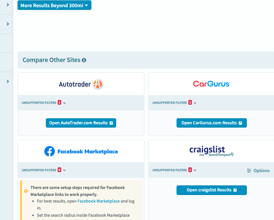 It would be nice if they would be able to tap into CarFax’s search engine. This might be more of a CarFax issue rather than an AutoTempest issue. I think CarFax might be getting a little greedy and making it difficult to get into their system. It might be that AutoTempest is working on it. However, if they are not working on it, this would be a great addition to the platform.