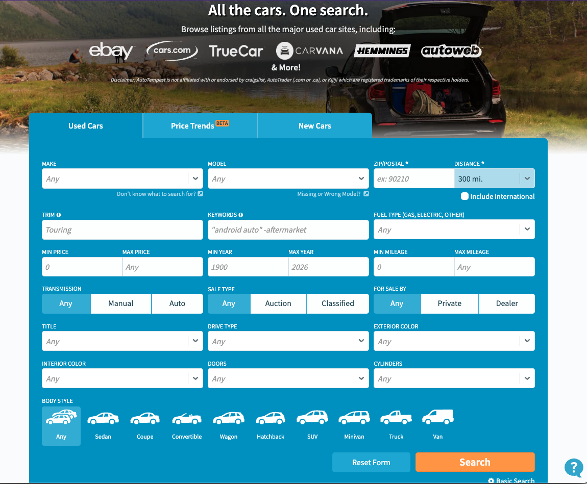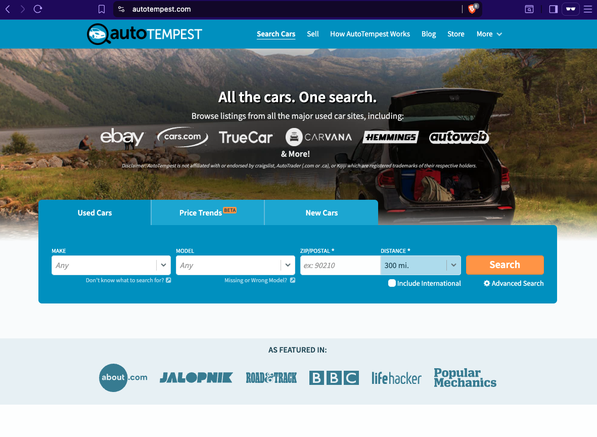 There is a site where you enter your search one time, and then you search all the other sites from this one search engine. This site is AutoTempest.com that storms the internet searching for your dream car.