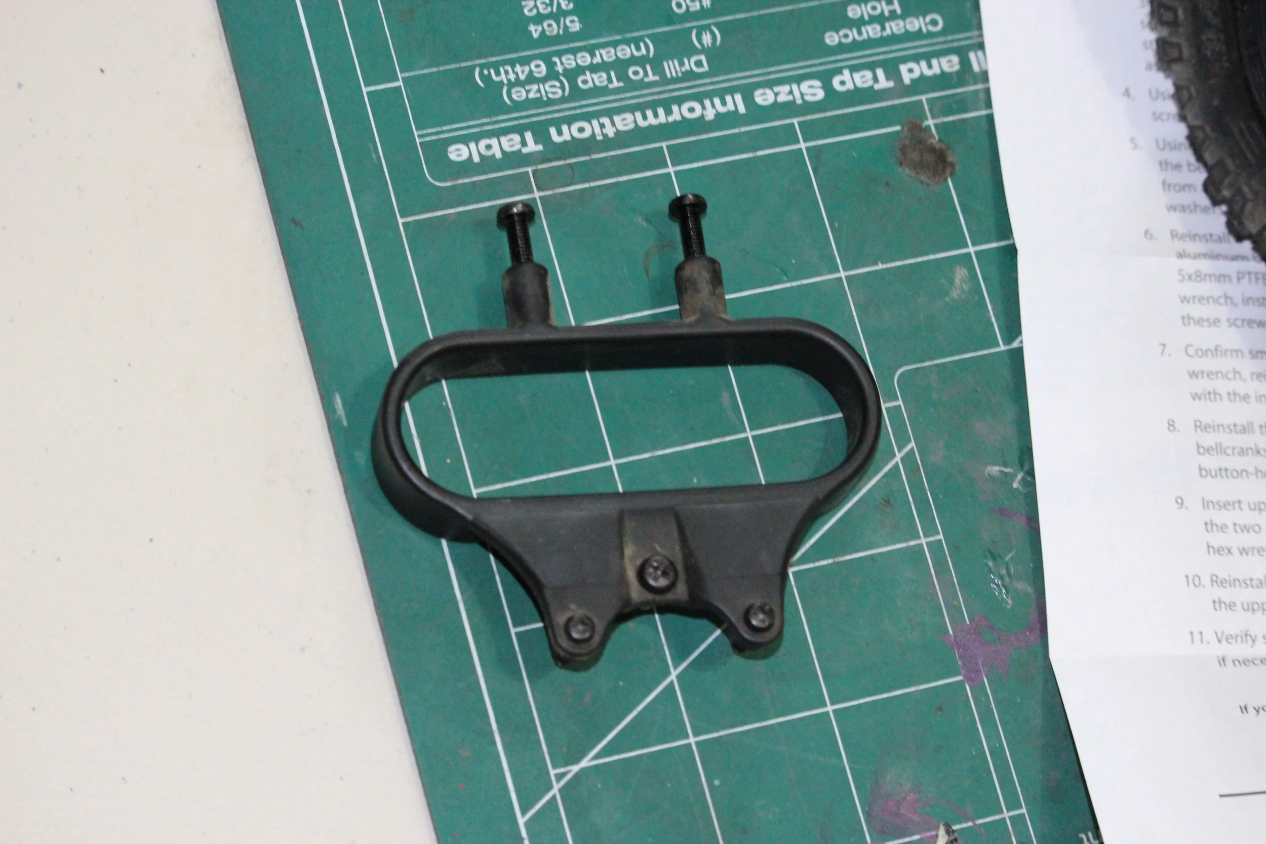 Once you get that loose, you can attach the new steering to the front. Trust me, you will feel like you are doing the hokey pokey, but it should wiggle out. Now, when you put in the new steering, make sure you take note of the new screws verses the old screws. The new screws that hold the steering to the steering posts are a little shorter. Also, make sure that when you tighten then up that you do not lose the ball bearings. The old steering had plastic bushings.